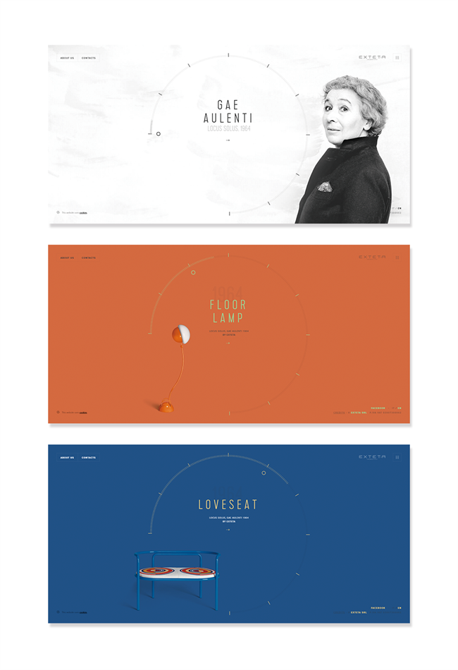 EXTET.R的首頁設(shè)計非常巧妙地安排了一個類似時鐘一樣的圓形滾動播放主屏畫面,畫面采用不同的背景色和不同的展示主題。造型別致新穎: