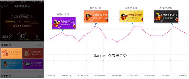 原本以為這是由于路徑縮短(新增按鈕)所帶來的轉(zhuǎn)化率提升,但進(jìn)一步了解產(chǎn)品的運(yùn)營策略后發(fā)現(xiàn),之所以數(shù)據(jù)上升,還有另外一個(gè)影響因素,即產(chǎn)品在會(huì)員中心頁面里新增了一個(gè) Banner 位: