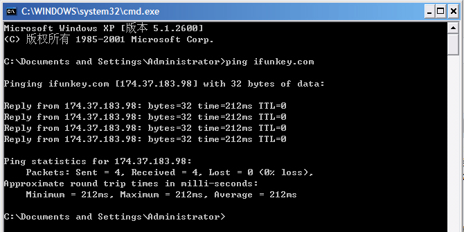 數(shù)據(jù)包:已發(fā)送=4,已接收=4,丟失=0 〈0%丟失〉,