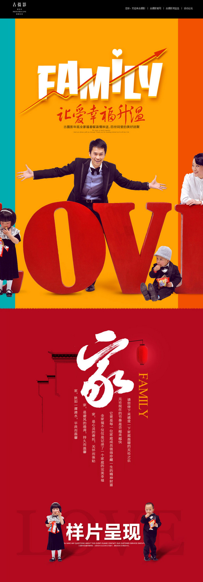 這個是以家為營銷點的攝影公司,采用的是流行的大字體網(wǎng)頁設(shè)計,色彩在第二屏采用的是中國喜慶的紅色。