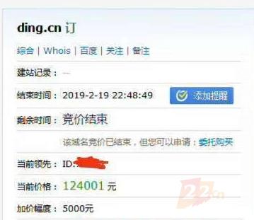 同時(shí),據(jù)米友透露,在第三方平臺(tái),該域名更是被拍到了124001元的高價(jià)。