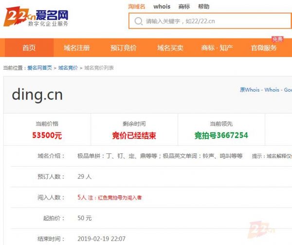 分享標(biāo)題:單拼域名ding.cn中五位價(jià)格結(jié)拍,或被買(mǎi)家撿漏!
