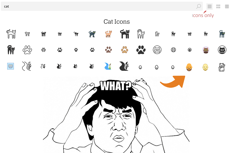 我讓參與者在純圖標(biāo)模式下搜索“貓”,然后指出任何離譜的搜索結(jié)果。