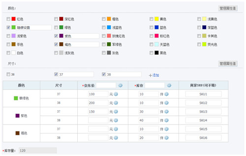 JD規(guī)格、價(jià)格、庫(kù)存、SKU設(shè)置頁(yè)面