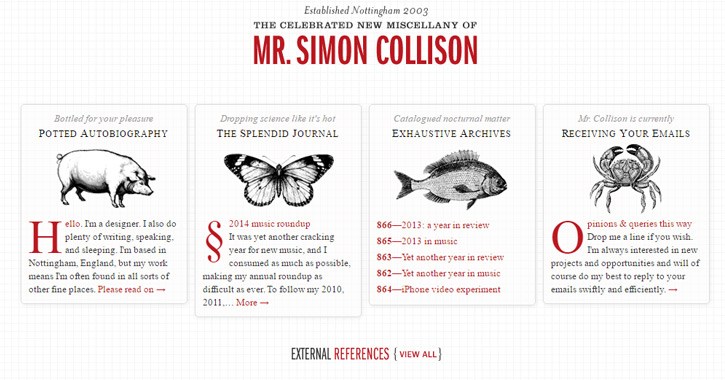 本文搜集了24個(gè)風(fēng)格各異的個(gè)人網(wǎng)站個(gè)案實(shí)例。這些網(wǎng)站展示了不同的設(shè)計(jì)風(fēng)格,有的小而簡(jiǎn)潔,有的色彩鮮明,還有的包括令人注目的設(shè)計(jì)和藝術(shù)作品,希望它們能給你提供一些設(shè)計(jì)靈感。