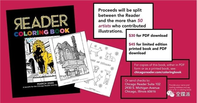 前段時(shí)間,《芝加哥讀者》聯(lián)合 50 位本地藝術(shù)家推出了涂色書(shū)。這本 52 頁(yè)的填色書(shū)以PDF的形式提供下載,此外,還提供了數(shù)量有限的印刷版本。