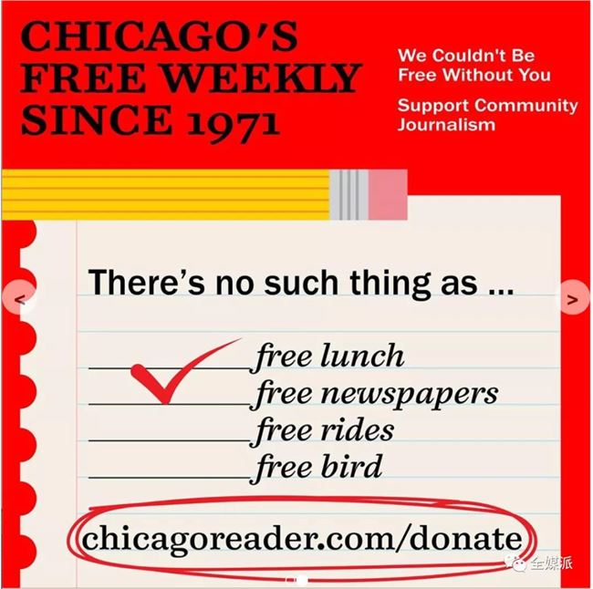 長(zhǎng)時(shí)間以來(lái),大部分傳統(tǒng)媒體都在采取發(fā)行和廣告并行的“二元銷售”模式,但在芝加哥街頭,你能免費(fèi)閱讀到《芝加哥讀者》 2019 年 11 月,《芝加哥讀者》宣布成為非營(yíng)利性紙媒,在本地免費(fèi)發(fā)放,本地廣告業(yè)務(wù)成為它最重要的收入來(lái)源。
