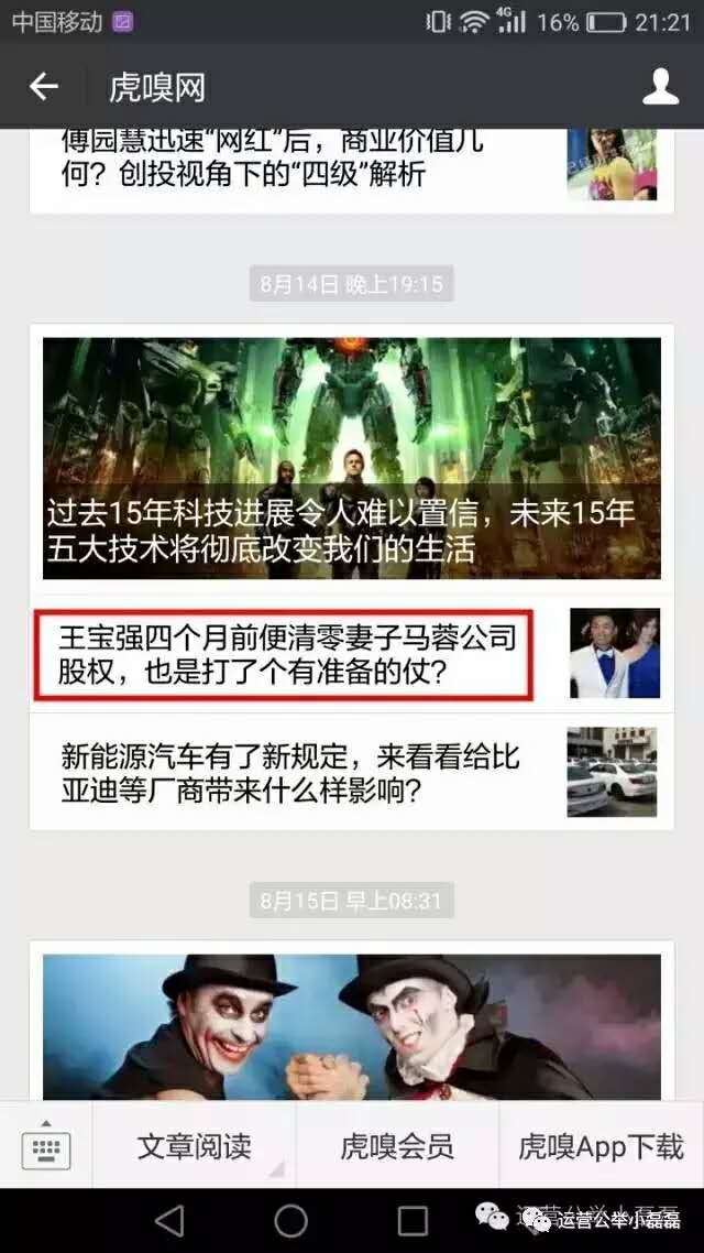 在小編看來,原生廣告甚至可以是公眾號某文章的100%內(nèi)容,例如“虎嗅網(wǎng)”以報道商業(yè)資訊而出名,其公眾號閱讀量少則三四萬,多點七八萬,有科技內(nèi)容、創(chuàng)業(yè)內(nèi)容、互聯(lián)網(wǎng)熱點、連王寶強的八卦也追……