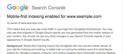 怎樣知道自己的網(wǎng)站已經(jīng)轉為mobile-first index?Google說會在Google Search Console中通知站長,消息大致是這個樣子: