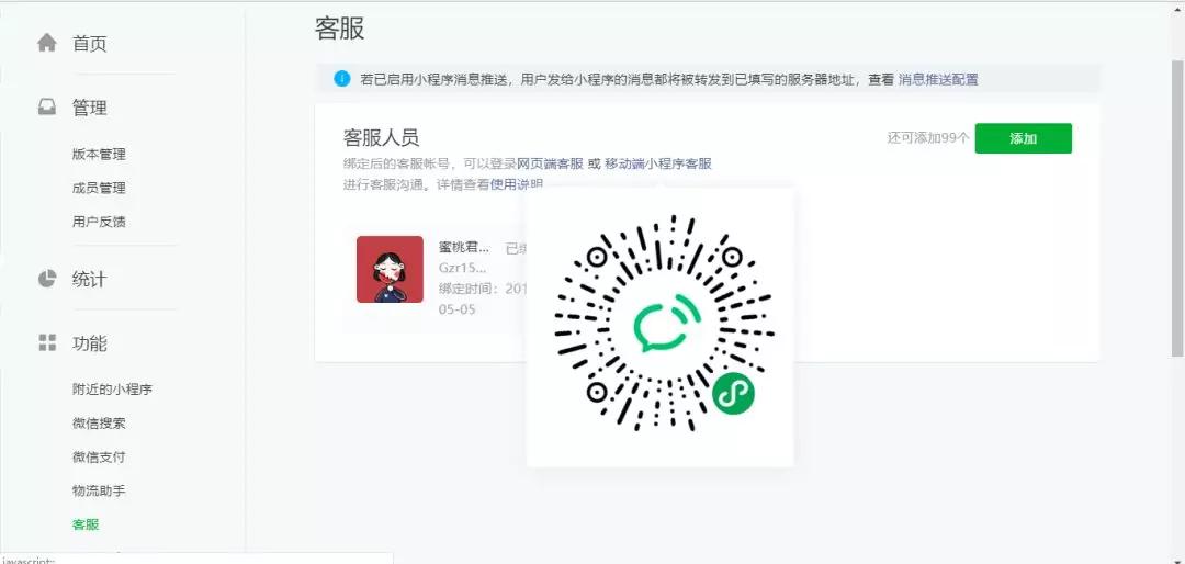 其次,綁定完成后,可以選擇是“網(wǎng)頁端客服”或者“移動端小程序客服”。