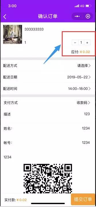 在小程序購買產品時,點擊立即購買,在提交訂單頁面會有一個產品數(shù)量的增減按鈕