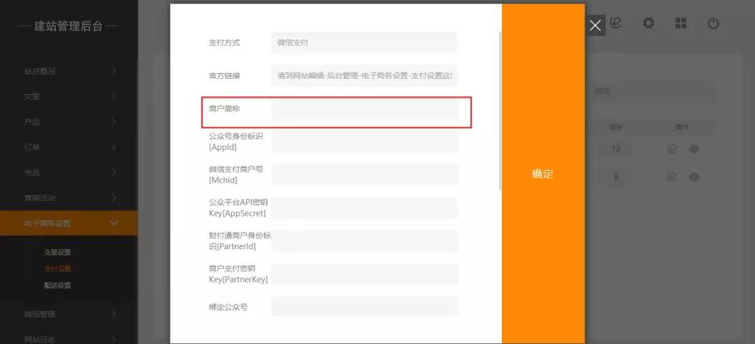 在后臺的電子商務設置—支付設置的“微信支付”中的“收款方名稱”改為“商戶簡稱”