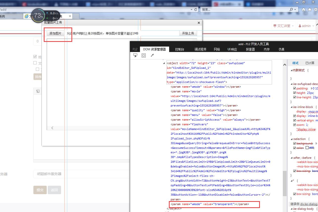 本文名稱:解決kindeditor編輯器因為Flash機制導(dǎo)致的圖片批量上傳按鈕看不見的問題