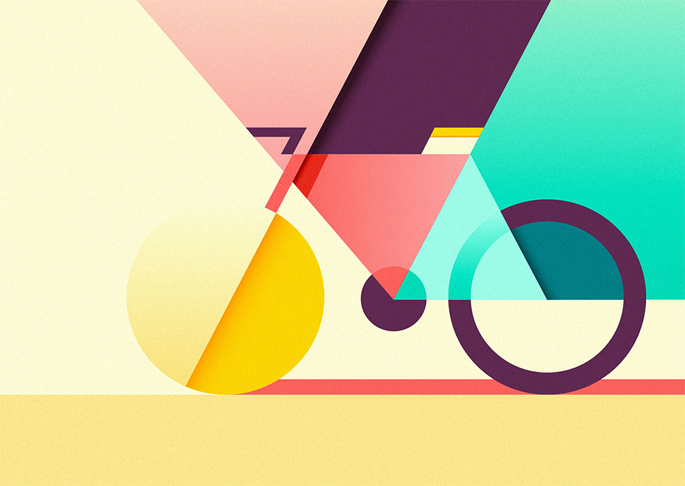 直線圍繞而成的形,如方形、三角形、平行四邊形等會給人一種踏實、平穩(wěn)的感受,當(dāng)然也會有城市建筑感。在這兩年,直線型的插畫設(shè)計非常流行,它提煉了事物的外形,獲得一種抽象的理性美感。