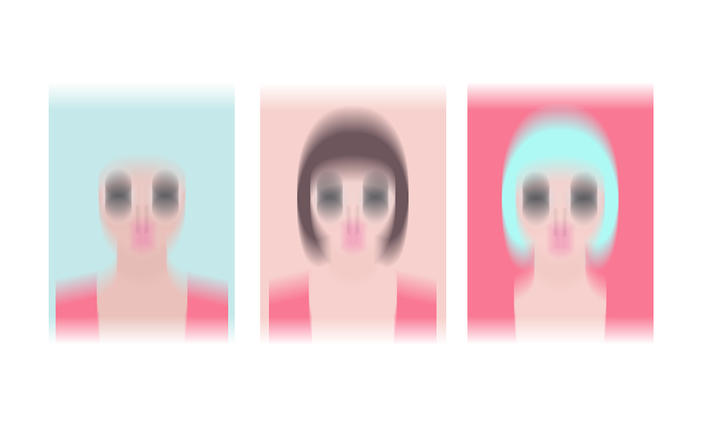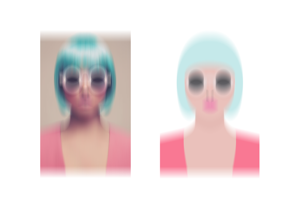 從攝影照片里找出正負形的關(guān)系來創(chuàng)建構(gòu)圖,非常重要的一個不可見的步驟是簡化視覺。將高光陰影的關(guān)系精簡到只剩下唯一線索。然后在軟件中用鋼筆工具勾畫出主要的輪廓形。這里是將原圖細節(jié)都模糊處理,全部提煉為扁平的形。采用曲線造型突出女性的柔和。