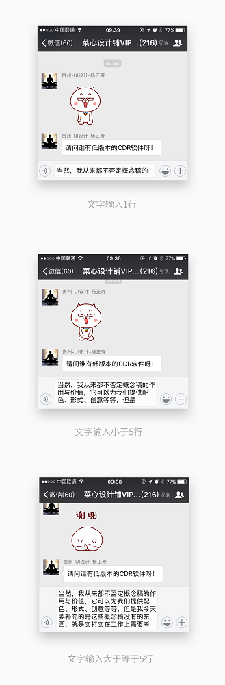 所以當(dāng)輸入多行文字時,我們一定要考慮清楚如何顯示,我們來看看微信聊天界面的規(guī)則: