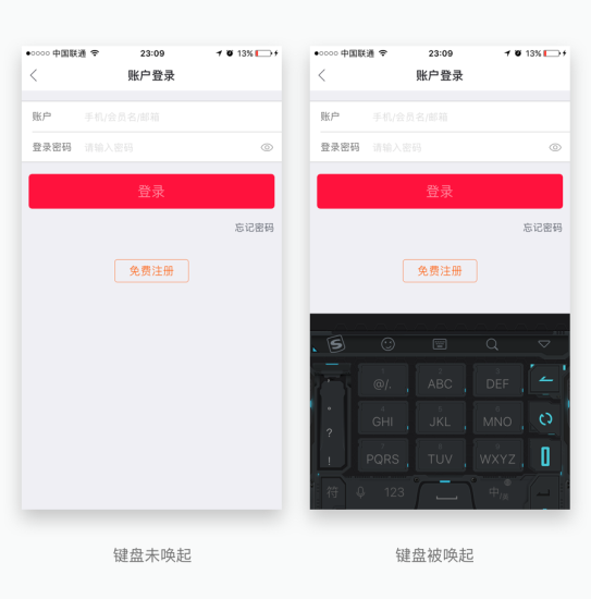 現(xiàn)在大家都知道,輸入內(nèi)容會喚起鍵盤,而鍵盤分為很多種類型,比如中文鍵盤、數(shù)字鍵盤、英文鍵盤,如果在輸出設(shè)計稿的時候?qū)︽I盤類型沒有標(biāo)注,開發(fā)哥哥就會使用默認(rèn)鍵盤,這樣就有可能造成一些降低體驗的問題,例如: