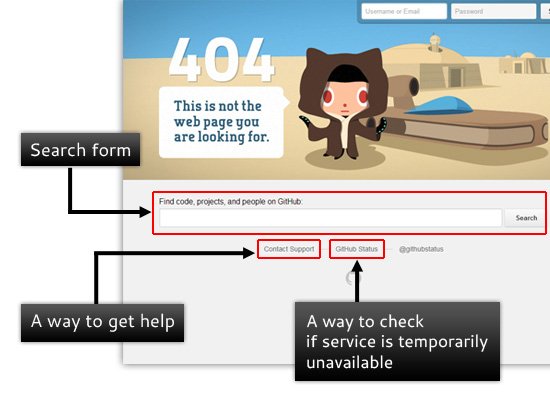 如果輸入不正確的URL就會出現(xiàn)404頁面,通常我們會看到這樣的文字:您的內(nèi)容可能不再存在,或可能已被移動、由于技術(shù)問題,某些網(wǎng)頁剛剛停止工作等等。對于這樣的事件,我們需要創(chuàng)建和設(shè)計一個有效的404頁面,這不單單是一個頁面,而是重申,讓用戶已經(jīng)知道發(fā)生了什么。404頁面也可以設(shè)計的人性化一點(diǎn),比如你可以設(shè)置一個搜索框、提供一種聯(lián)系方式、添加一些建議內(nèi)容列表等等。