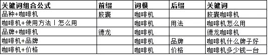 當(dāng)我們分析咖啡行業(yè)時(shí),會(huì)發(fā)現(xiàn)用戶有這些方面的需求:購(gòu)買物料/設(shè)備、了解使用方法/制作技巧。關(guān)鍵詞的共性需求就有,咖啡豆價(jià)格/咖啡機(jī)價(jià)格等,XX咖啡制作方法。