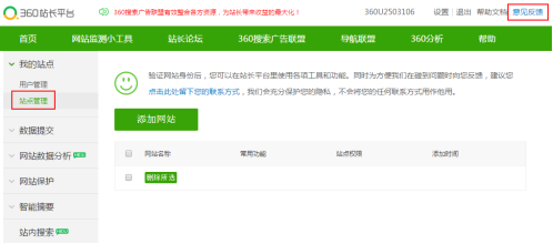 站長平臺反饋中心:http://info.so.com/feedback.html?product=zhanzhang
