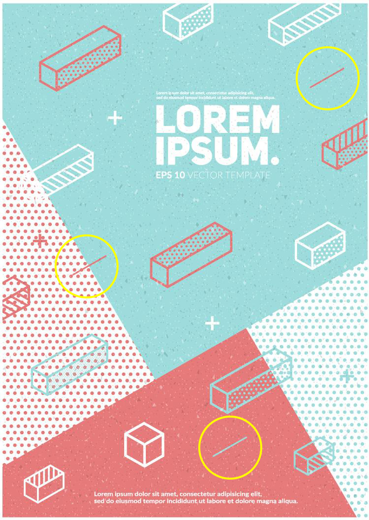 通過這些設(shè)計(jì)案例我們可以分析并總結(jié)出,有效的利用點(diǎn)線面的組合可設(shè)計(jì)出層次豐富的作品。而我們要如何做呢?——置換臨摹。借鑒好的設(shè)計(jì)作品的點(diǎn)線面的構(gòu)成元素再加以利用和創(chuàng)新。