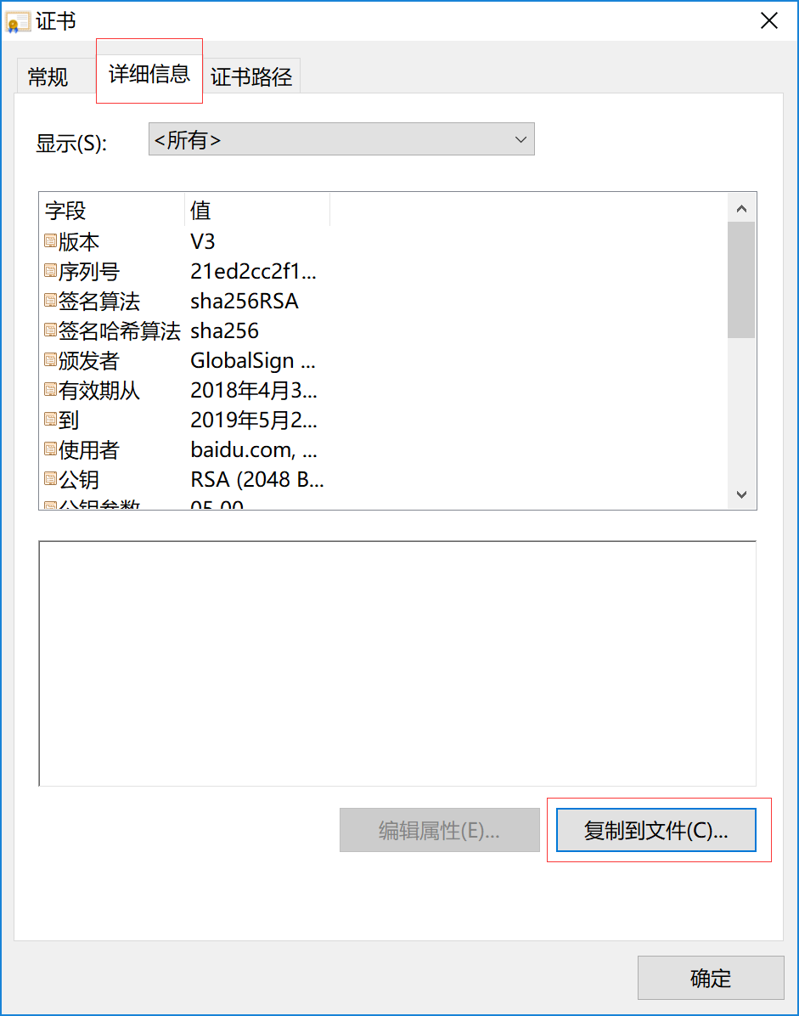在證書詳細(xì)信息中能看好很多有用的信息,就以百度的證書為例來說明一下。