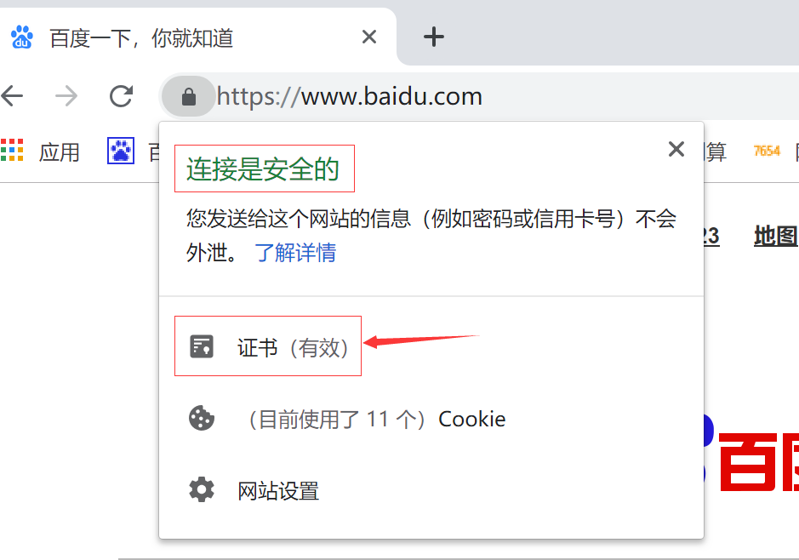 點擊“安全鎖”圖標(biāo),瀏覽器會告訴你,當(dāng)前的網(wǎng)站時安全的,再點擊“證書”就能查看當(dāng)前網(wǎng)站的安全證書的詳細(xì)內(nèi)容,如圖。