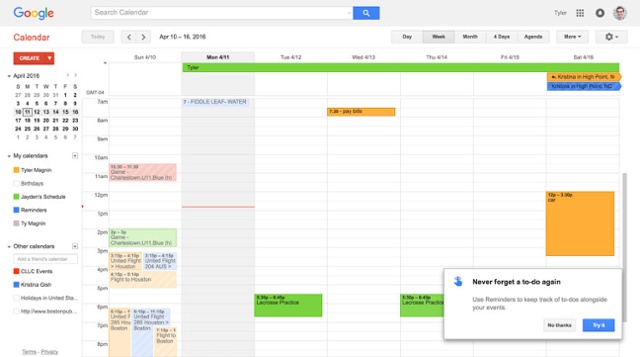 類似的,Google也有提高新功能接受度的例子。Google使用不同的彈窗去告之老用戶有新功能,有時(shí)候是居中的,有時(shí)候是側(cè)滑式的。下圖是Google Calendar如何告知用戶新“提醒”功能。