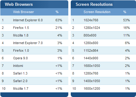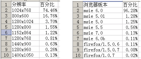 下面是關(guān)于瀏覽器和屏幕分辨率的統(tǒng)計(jì)數(shù)據(jù):