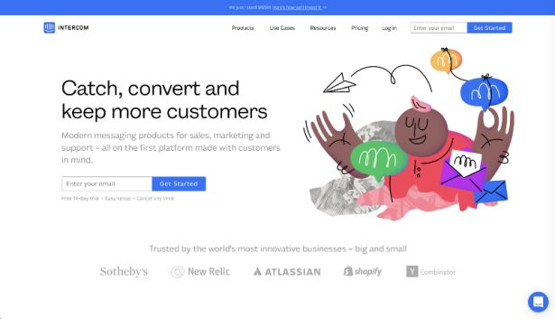 圖13. Intercom客服系統(tǒng)于2017年底重新設(shè)計(jì)插畫(huà)風(fēng)格