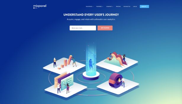 圖16. Mixpanel是產(chǎn)品分析的工具,大量運(yùn)用漸層色及isometric插畫(huà)(2017.08)