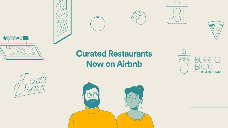 2017年九月Airbnb與Resy合作,推出餐廳預(yù)約功能Curated Restaurant,Jonas Mosesson運(yùn)用生動(dòng)活潑的插畫(huà)說(shuō)明使用情境。
