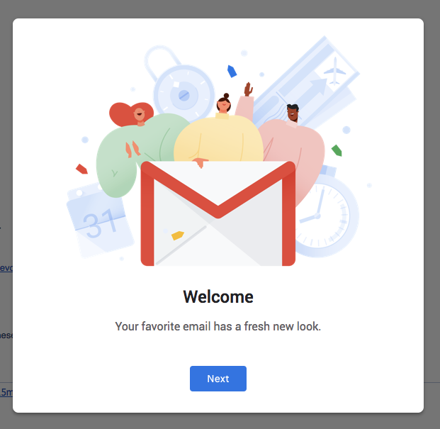 圖9. Gmail 新改版的launch視窗運(yùn)用插畫(huà)讓使用者感到親切(2018.04)