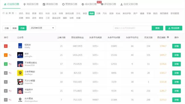 西瓜數(shù)據(jù)各類公眾號榜單排名