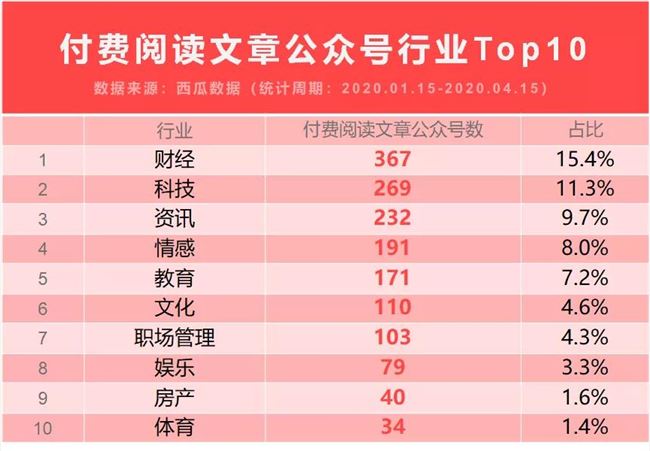 發(fā)文趨勢/付費內(nèi)容行業(yè)TOP10