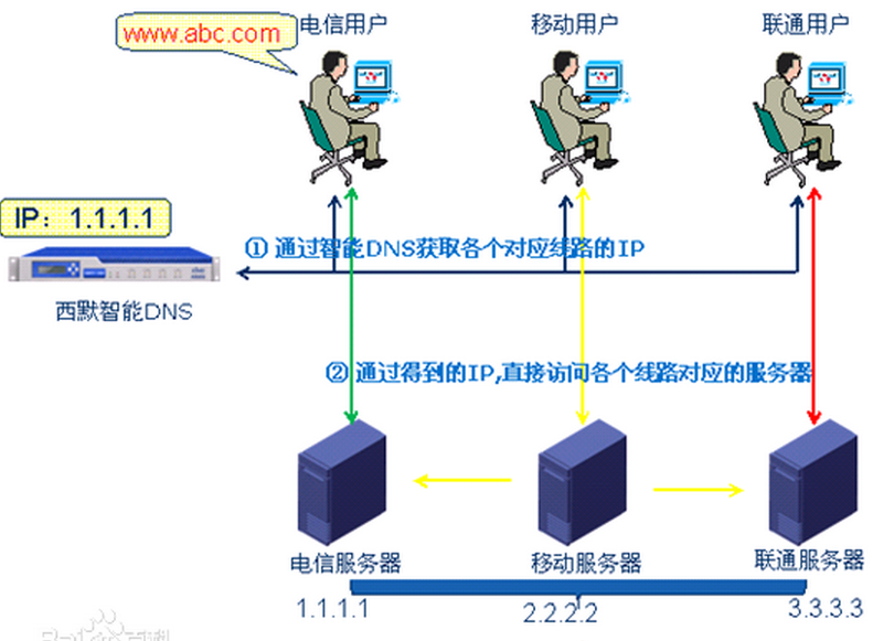 智能DNS是域名服務(wù)在業(yè)界首創(chuàng)的智能解析服務(wù)。能自動判斷訪問者的IP地址并解析出對應的IP地址,使網(wǎng)通用戶會訪問到網(wǎng)通服務(wù)器,電信用戶會訪問到電信服務(wù)器。