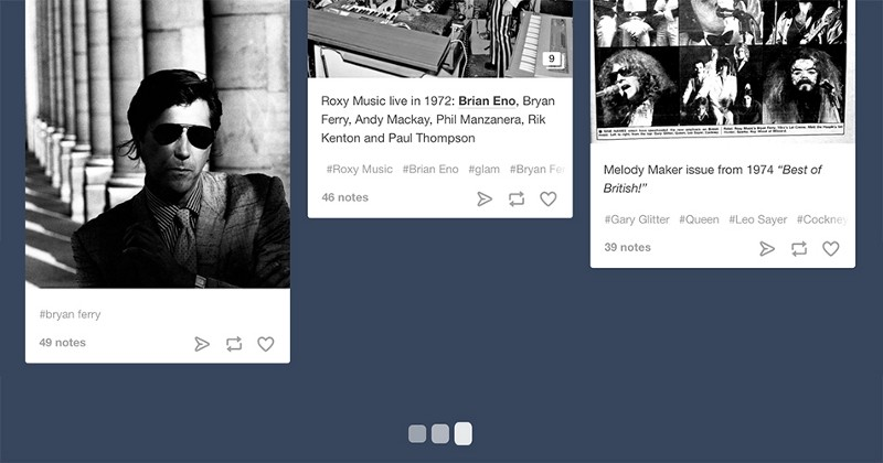 長(zhǎng)滾動(dòng)的另一個(gè)常見問題是定向障礙:用戶可能難以找到以前在頁面上看到的內(nèi)容。當(dāng)內(nèi)容分解成多個(gè)同樣重要的部分或版塊(例如長(zhǎng)教程)時(shí),這可能是一個(gè)嚴(yán)重的問題。“跳到部分”選項(xiàng)將解決這個(gè)問題。例如,在Tumblr上,用戶可以跳下頁面,或者如果丟失,可以跳回到開始。頁面上的內(nèi)容被分解成幾個(gè)明確區(qū)分的版塊,大的指示符點(diǎn)固定在屏幕的左側(cè)。
