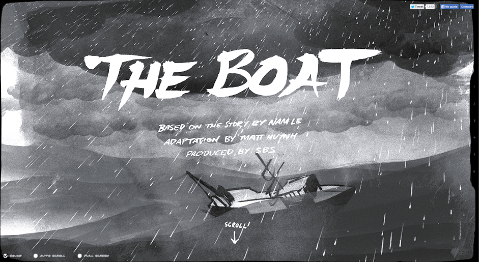 視差滾動(dòng)在指導(dǎo)講故事中也非常有效。當(dāng)你想要以平滑,線性的方式講故事時(shí),將長(zhǎng)滾動(dòng)與視差效果配對(duì)可以創(chuàng)建完全身臨其境的瀏覽體驗(yàn)。在 The Boat,如下所示,隨著用戶的滾動(dòng),動(dòng)畫將他們帶到下一個(gè)屏幕,同時(shí)創(chuàng)建一個(gè)跟隨內(nèi)容的路徑。這會(huì)使?jié)L動(dòng)更有趣,讓用戶知道“接下來會(huì)發(fā)生什么?