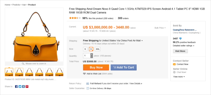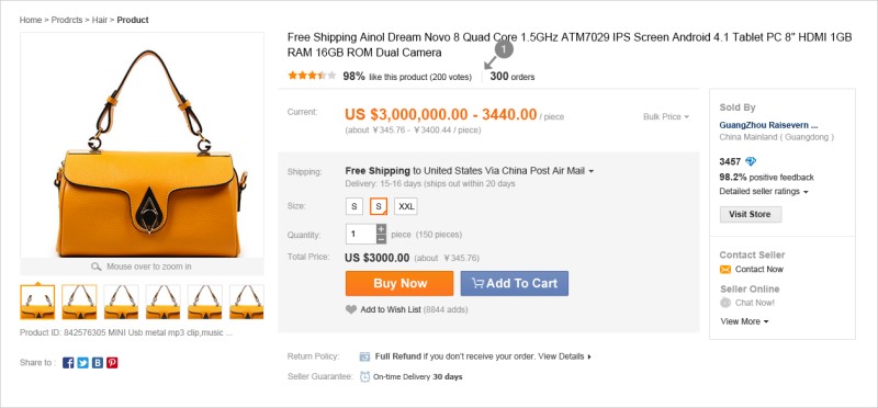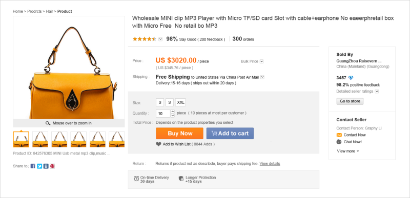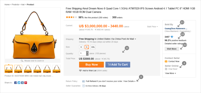 3 retum policy:第3梯隊(duì)的信息處理起來就更容易了,包括面包屑、還有店鋪相關(guān)的detailed seller ratings等信息,都用了最簡(jiǎn)單處理手法,顏色為黑灰色,字號(hào)為12px。