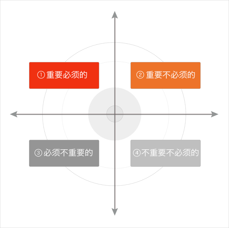 我們姑且把它叫做“十字法”,重要且必須的那一象限自然是優(yōu)先級(jí)高的。另外三個(gè)象限依次是優(yōu)先級(jí)2 / 優(yōu)先級(jí)3 / 優(yōu)先級(jí)4。
