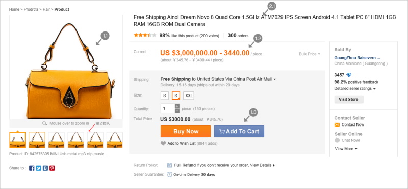 1.1 產(chǎn)品圖片:產(chǎn)品圖片中的產(chǎn)品大圖,這個(gè)無需多做修飾,圖片本身以及位置就能說明其重要性。