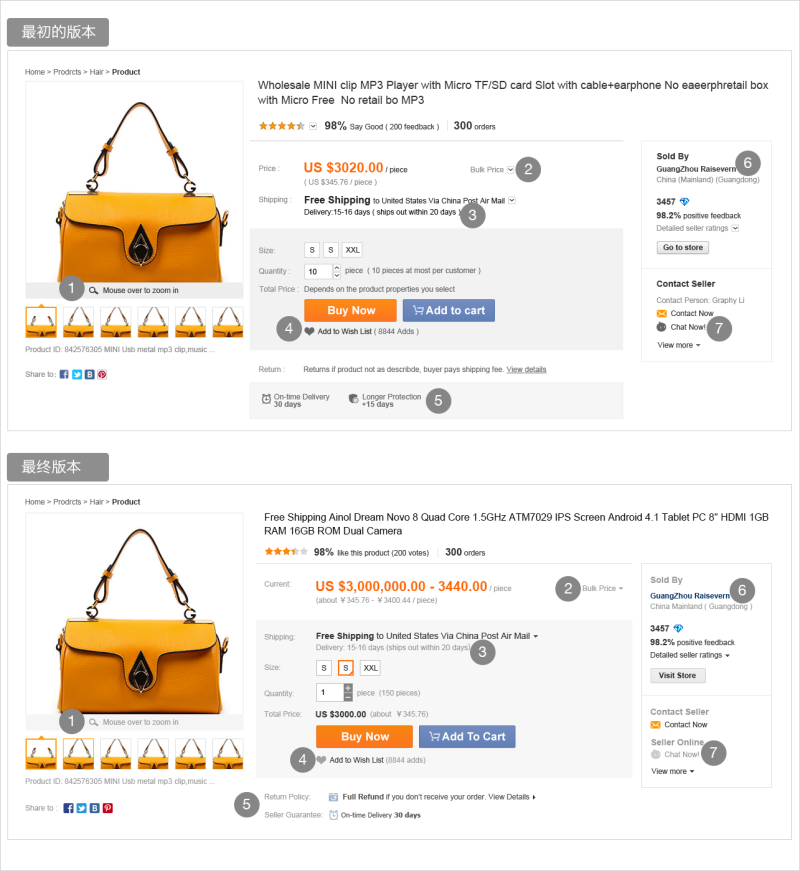 下面配圖中,最初的版本中的圓圈1-7與最終版本是一一對(duì)應(yīng)的,可以對(duì)比看下效果。