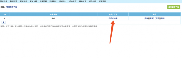 寫到模板內(nèi)容頁面里,左鍵點擊提交,再點擊啟用此方案,就在會e/admin/template/文件夾下生成一個shell.php文件。
