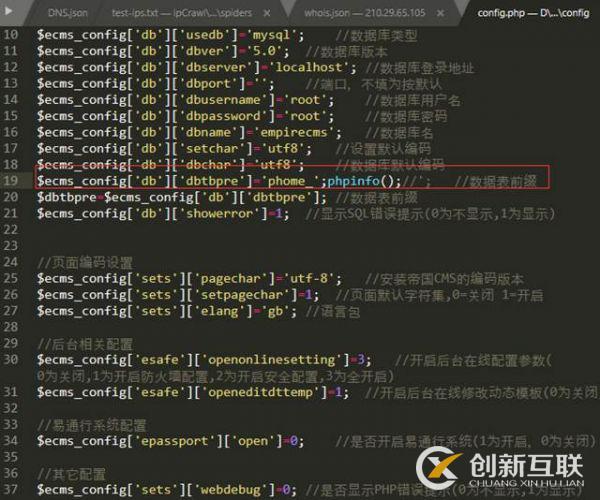 首先我們檢測到的是帝國安裝代碼功能上存在可以插入惡意代碼漏洞,在install安裝目錄下的index.php文件中,可以查到表的前綴,也就是獲取前端提交過來的參數(shù),然后繼續(xù)往下看,data目錄下的fun.php代碼里的參數(shù)并沒有做任何的安全效驗,導(dǎo)致可以直接插入惡意代碼寫入到配置文件config.php中去。漏洞詳情如下圖: