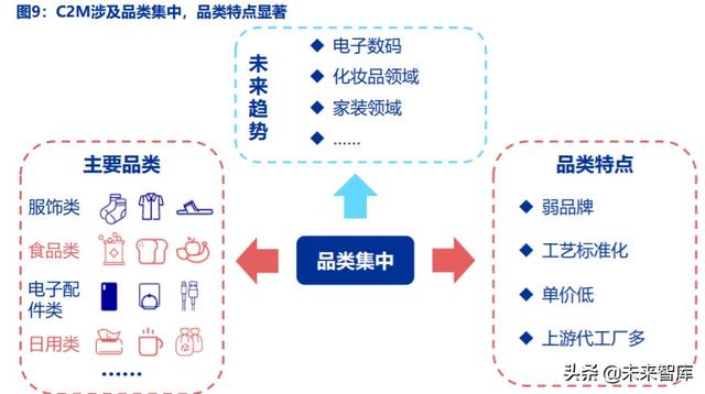 C2M的品類(lèi)目前主要集中在一些弱品牌化標(biāo)準(zhǔn)品,比如服飾類(lèi)、食品類(lèi)、電子配