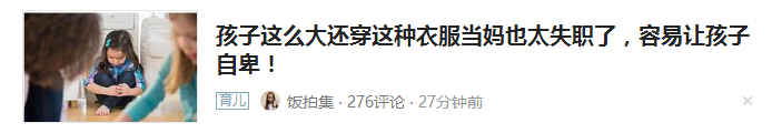 關(guān)于該不該給孩子穿舊衣服,各人有個(gè)人的觀點(diǎn)。觀點(diǎn)不同,很容易引發(fā)爭(zhēng)論。而這往往就都體現(xiàn)在評(píng)論上了。