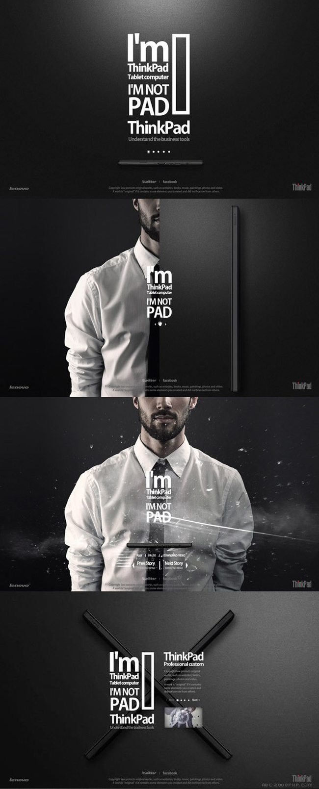 ThinkPad筆記本又稱為“小黑”,真是符合產(chǎn)品、名稱的網(wǎng)頁設(shè)計——黑色系列網(wǎng)頁設(shè)計。