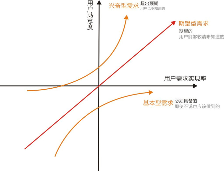 Kano模式是一個需求分類和優(yōu)先級排序的模型,將需求劃分為5類:基本需求、期望需求、興奮需求、無差異需求、反向需求,很好地說明的用戶的滿意度情況。