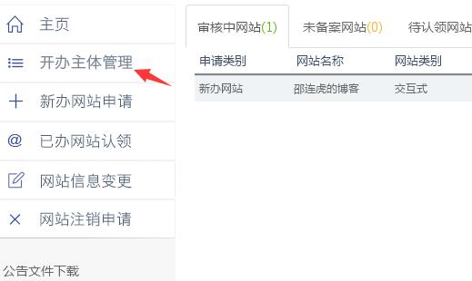 2,登錄后會提示填寫開辦主體管理,如果沒有提示登錄后點擊左邊的菜單就行