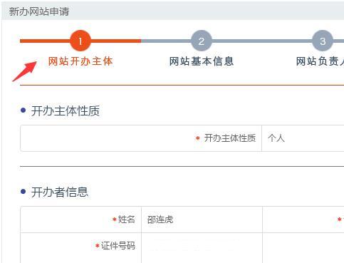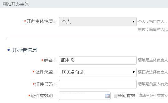 3,填寫主體相關的信息,比如個人,姓名,身份證等信息,然后保存
